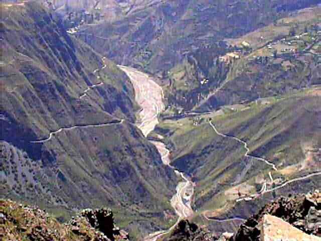 Visione panoramica del fiume Ayopaya dalla punta del cerro Kami. |