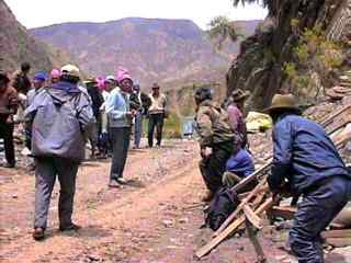 Camion carico di persone delle diverse comunità che partecipano ai lavori delle opere civili della centrale. |